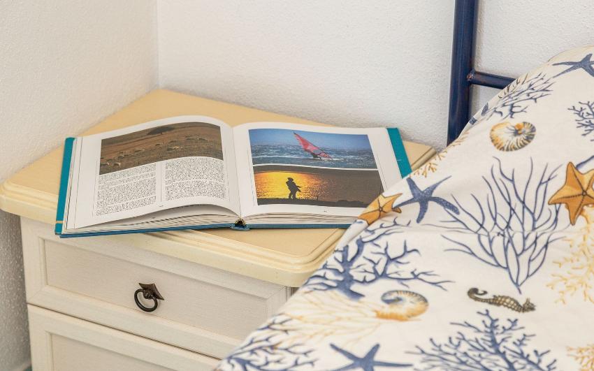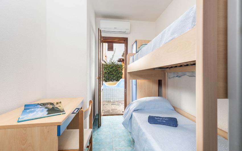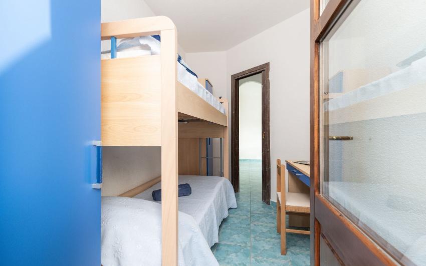 Questo appartamento al primo piano di un tranquillo residence a Sos Alinos è ideale per coppie e famiglie che cercano comfort, praticità e relax. Dispone di due camere da letto (una matrimoniale ed una con letto a castello), un bagno e cucina attrezzata. La cucina si completa con un soppalco in legno.